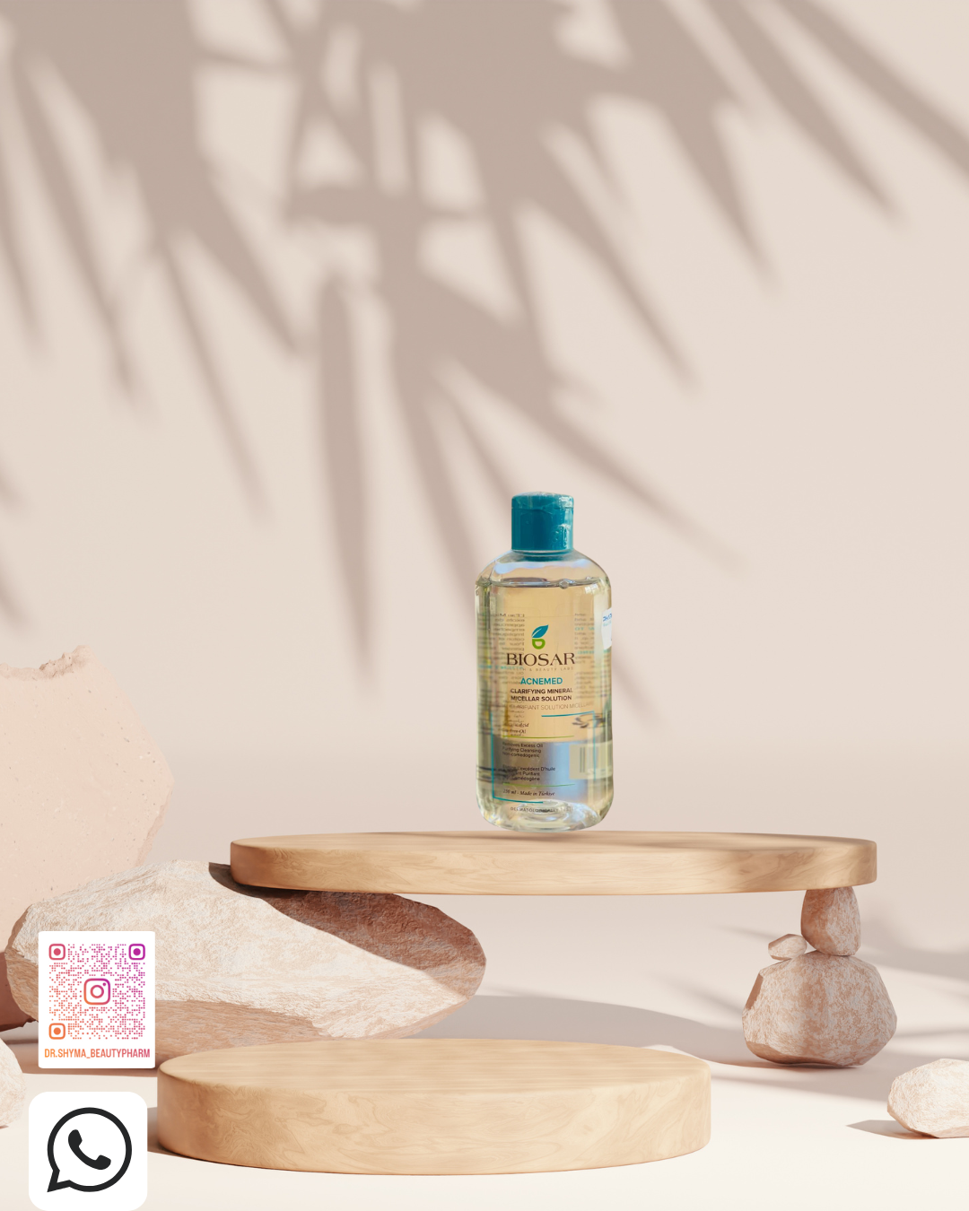 محلول ميسيلاري من خط Acnemed من علامة Biosar، مُصمَّم للبشرة المختلطة، الدهنية، والمعرضة لحب الشباب والشوائب.
